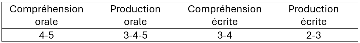 Il couvre les niveaux suivants de l’Échelle québécoise des niveaux de compétence en français :